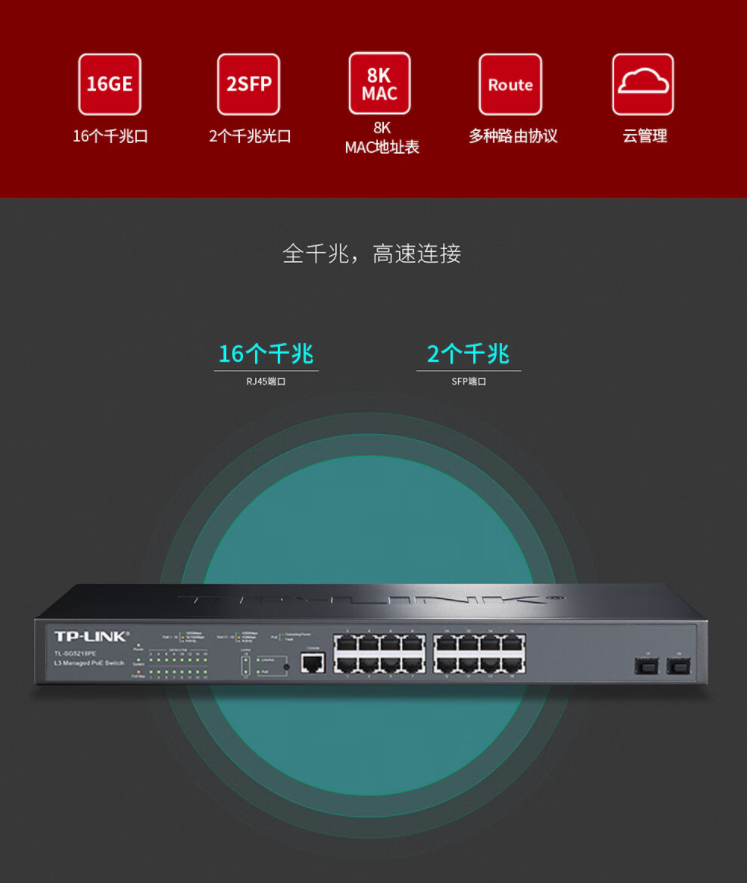 以太網(wǎng)交換機(jī)普聯(lián)/TP-LINK18口可網(wǎng)管2光口16口供電企業(yè)級千兆三層PoE交換機(jī)TL-SG5218PE/臺