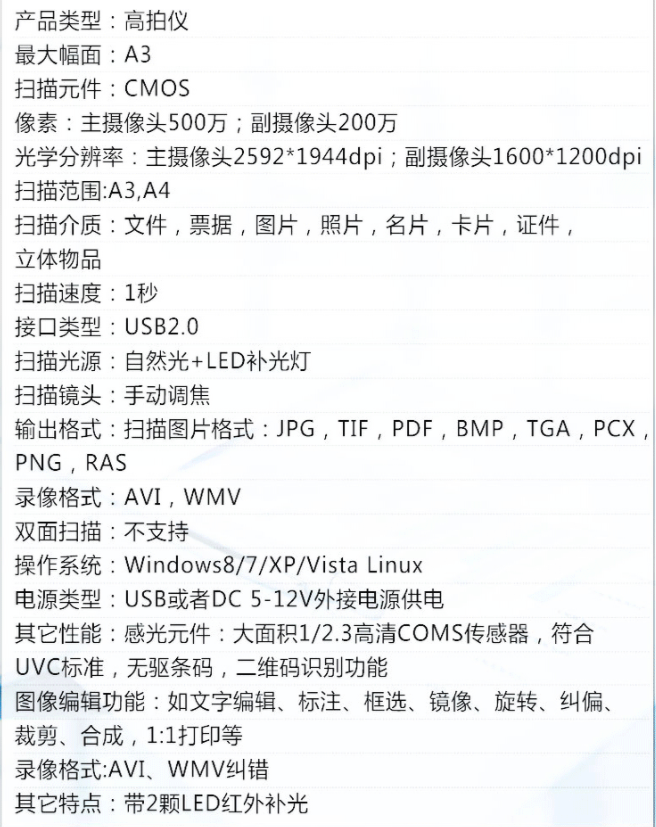 像素(高拍儀)  :   1000W
